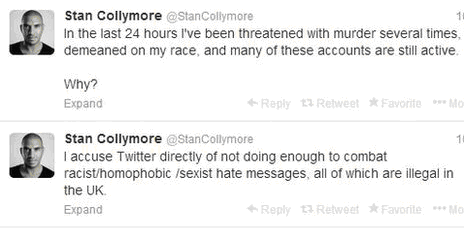 Collymore has since accused Twitter directly of “not doing enough to combat racist/homophobic/sexist hate messages, all of which are illegal in the UK” but that “Several Police forces have been fantastic.”